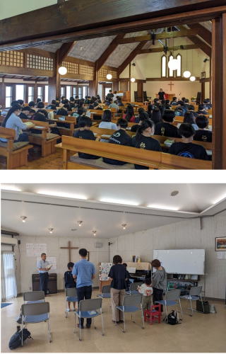 福岡女学院の方々だけでなく、地域に開かれた教会として毎週礼拝を献げています。クリスチャンだけでなく、どなたでもどうぞ礼拝においで下さい。お待ちしています。